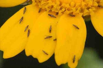 این حشره سیاه که به اندازه یک میلی متر می باشد برگها و نوک شاخه ها و گلها را در محلهای گرم و خشک و غیر رطوبتی مورد حمله قرار می دهد. ابتدا روی برگها لکه های کوچک زرد رنگی ظاهر می شود و سپس نقره ای می شوند غنچه های گل به سختی می شکفند و گلها از بین میروند و در صورت نیاز سم پاشی با unden مایع 1.5میلی لیتر و یا مواد مشابه توصیه می شود .
