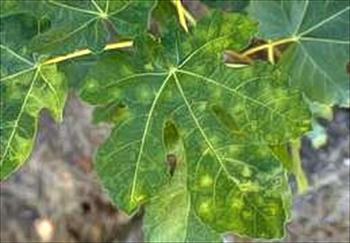 شامل بدشکلی برگها و ایجاد لکه های کلروتیک روی برگ و میوه است.