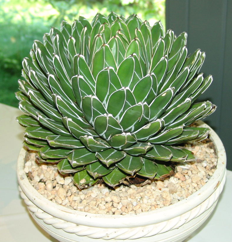 تیره با علامتهای سفید تابان در حاشیه برگها ، برگها بدون تیغ هستند تنها یک تیغ