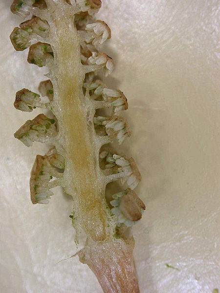هر کدام از نقطههای سیاه در زیر برگ این سرخس، یک هاگینه است.