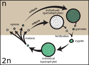 در هاگدان محتوی سلولهای مادر هاگ است که پس از تقسیم میوز هاگهای هاپلوئید دارای پوشش محافظ تولید میکنند.سرانجام هاگدانها خشک شده و شکفته میشوند و هاگها بیرون میریزند. بعدا این هاگها میرویند و گامتوفیتهای هاپلوئید را بوجود میآورند. اندامهای جنسی آنتریدی و آرکگون در سطح زیرین گامتوفیت ایجاد میشوند. آنتریدی تولید گامت نر و آرکگون تولید گامت ماده را میکند که از لقاح آنها تخم ایجاد شده و از رشد تخم گیاه اسپوروفیت حاصل میشود. و به این ترتیب این چرخه ادامه مییابد.