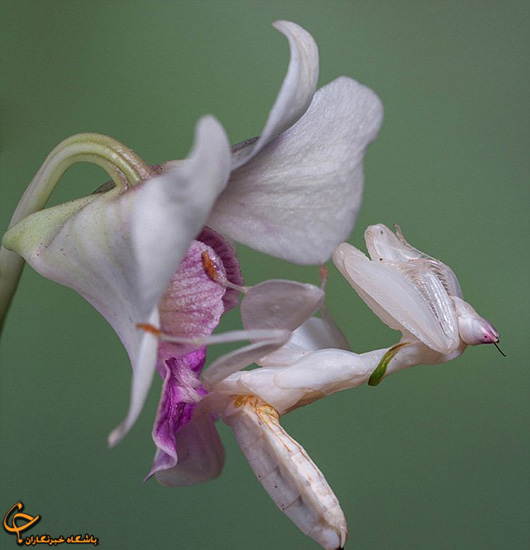 گیاه "مانتیس" ارغوانی رنگ، حشره‌ای را که روی آن نشسته غافلگیر کرده و ناگهان او را می‌خورد.
