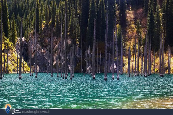 به گزارش زیست آنلاین از مشرق آب دریاچه کایندی قزاقستان همیشه سرد است.