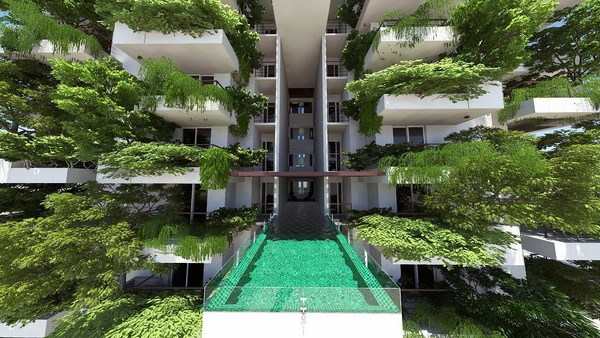 مربع تشکيل شده، و هر آپارتمان دارای بالکني اختصاصی با پوشش گیاهی مناسب