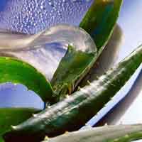مي توان برگهاي گياه را قطع کرد.در محل قطع شده ژل بي رنگي نمايان مي شودکه مي توان از آن براي درمان آفتاب سوختگيُ-مرطوب کردن پوستو نرم کردن اگزماي زير چشم ...استفاده کرد.