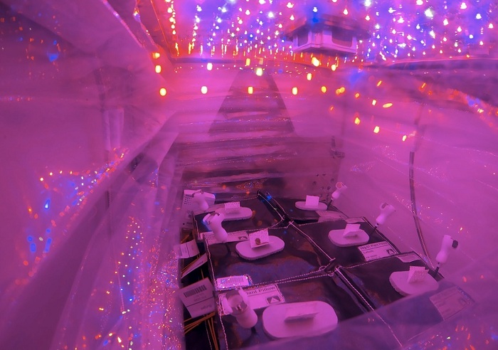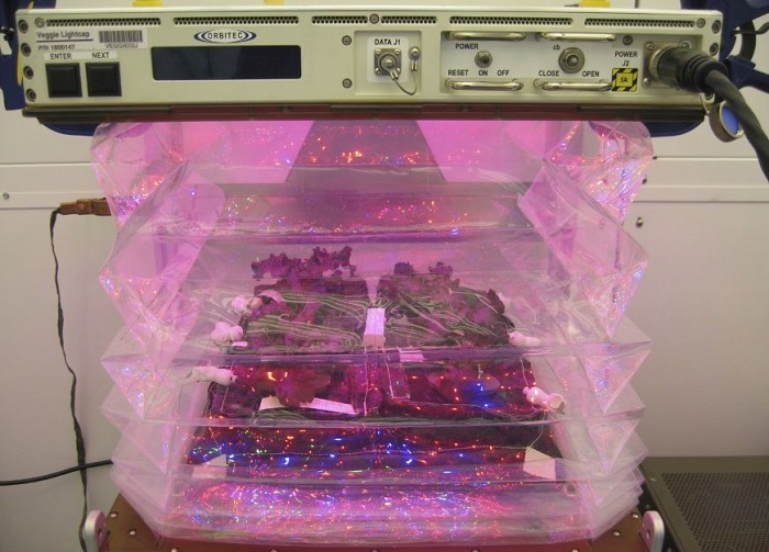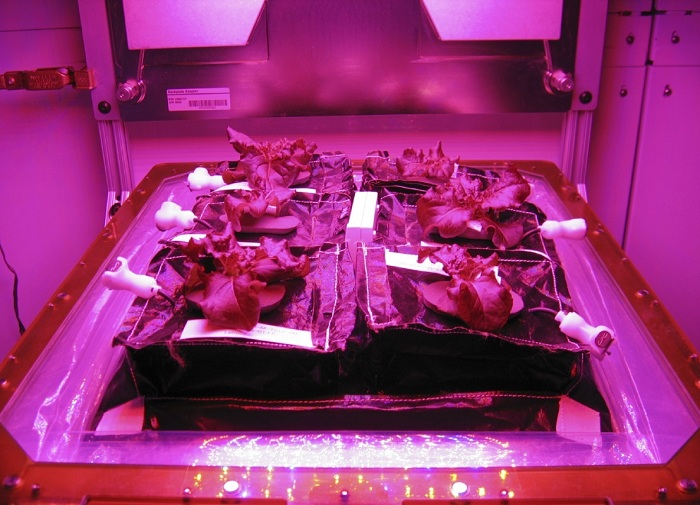 مدت کاشت تا برداشت این گیاهان که عمده آن کاهوی بنفش است، ۳۳ روز طول می کشد. سیستم کشاورزی فضایی با سیستم زمینی کاملا متفاوت است و محققات از یک سیستم رشد گیاه به نام Veggie استفاده کرده اند.