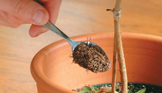 را جمع کنید و 5 سانتیمتر از خاک روی گلدان آنها بردارید تا لاروهایی که پیش از