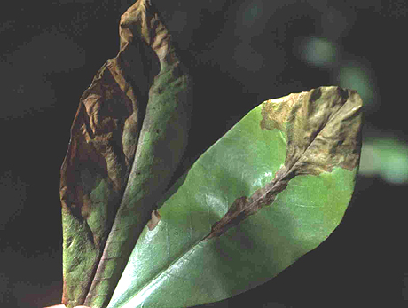 مرگ رگبرگ اصلی برگ و بافتهای پیرامون آن شده و موجب قهوه ای شدن برگ میشوند.