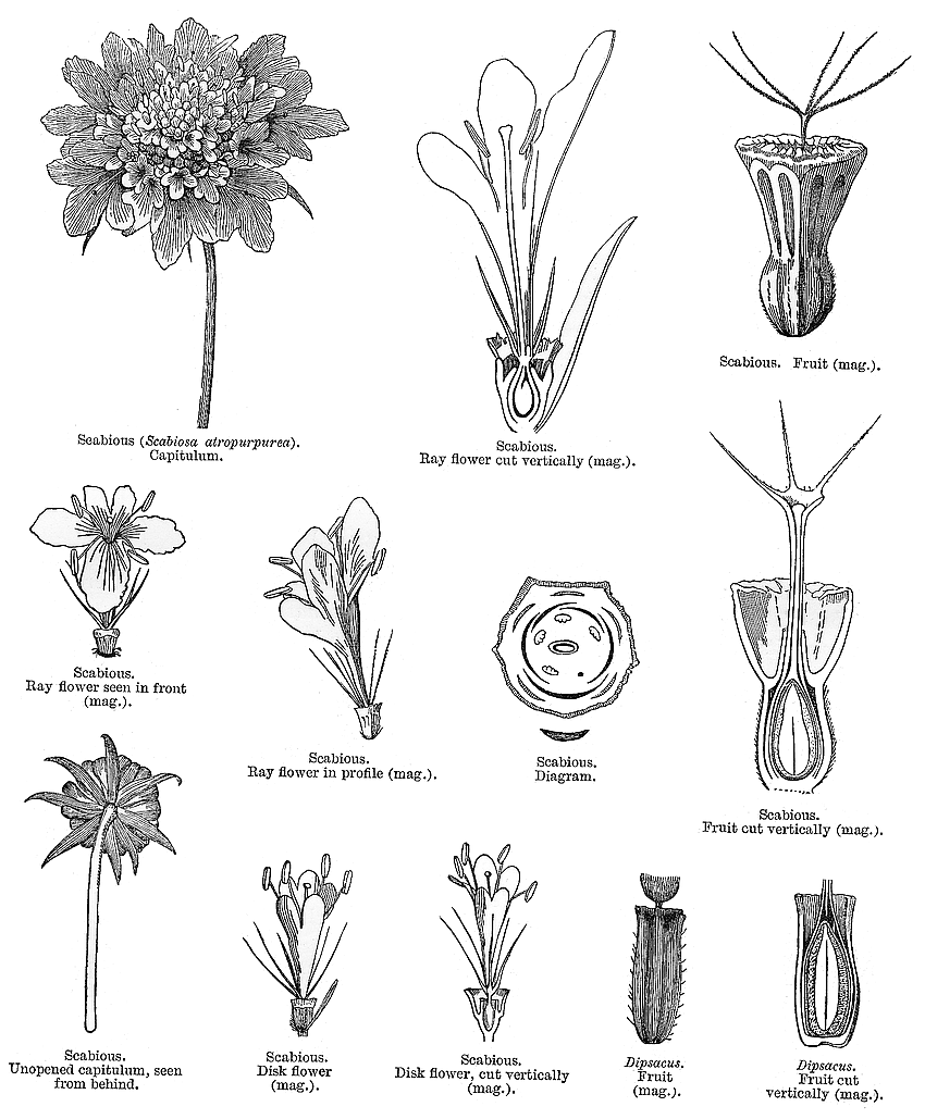 , Pycnocomon, Scabiosa, Scabiopsis, Sixalix, Succisa, Succisella,