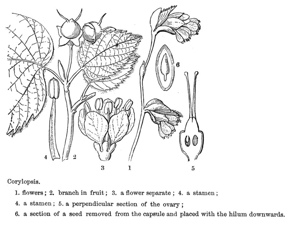Chunia ,  Corylopsis,  Dicoryphe,  Disanthus,  Distiliopsis,  Distylium,  Embolanthera,