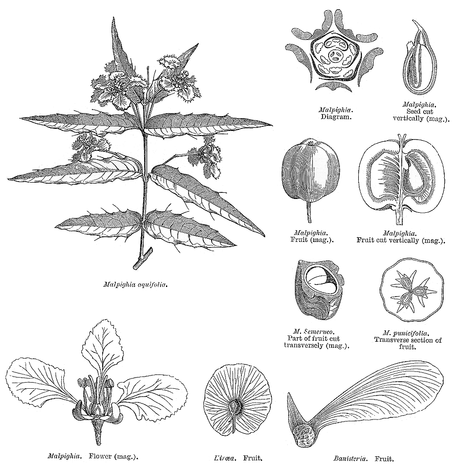 Stigmaphyllon, Tetrapteris, Thryallis, Triaspis, Tricomaria, Triopteris, Tristellateia, Verrucularia.