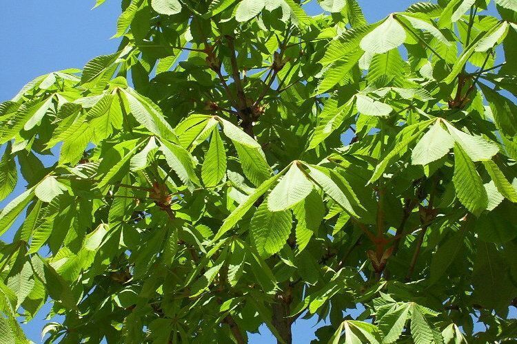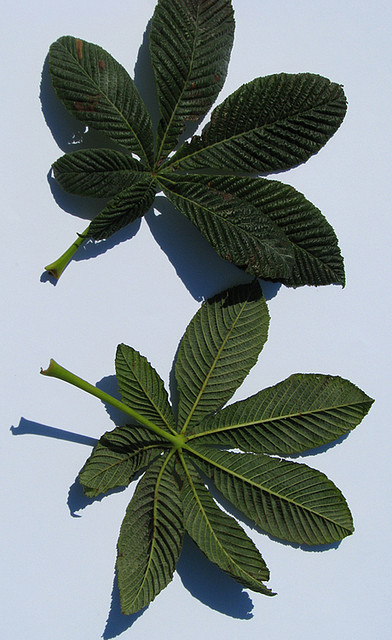 برگهای این درخت مرکب پنجه ای و متقابل است و هر برگ دارای 5-7 برگچه است.هر برگچه 13-30 سانتی متر طول دارد که تقریبا کل برگ را تا 60 سانتی متر می رساند.طول دمبرگ ها7-20 سانتی متر است.