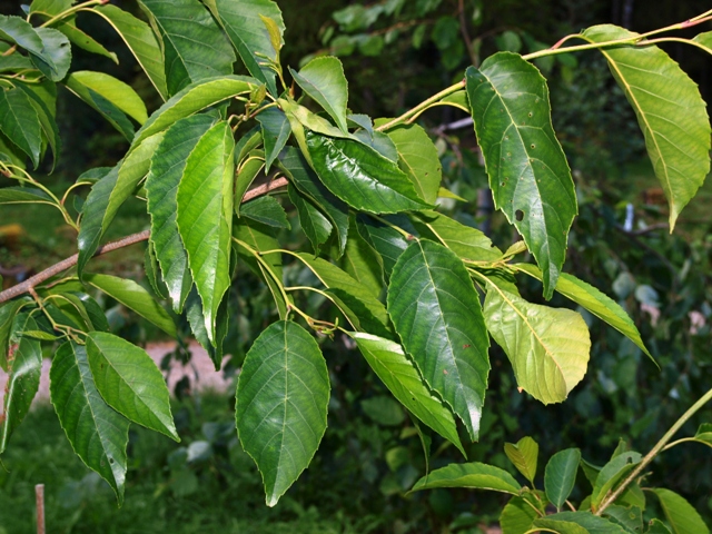 برگهای این درخت به صورت کشیده و قلب مانند هستند و بین 5 تا 15 سانتیمتر طول دارند.