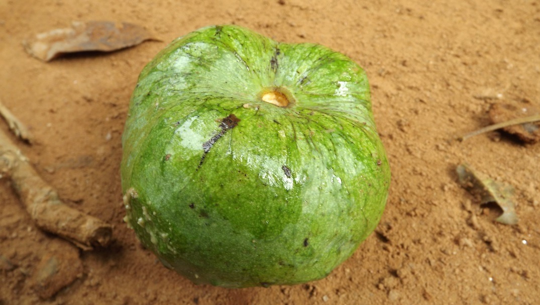 گل ها کوچک و به رنگ مایل به سبز می باشد. میوه ها به قطر بیش از 12 سانتیمتر، به رنگ سبز (در صورت رسیدن) و صاف، با پالپی به رنگ سفید مایل به زرد وجود دارند. بذور این گیاه نیز به طول حدود یک سانتیمتر و به رنگ سیاه هستند.
