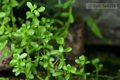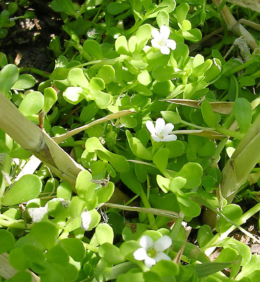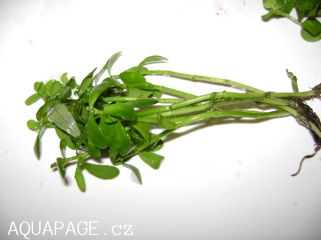 برگ های این گیاه بسیار شاداب و نسبتا ضخیم است و به صورت مخالف بر روی ساقه قرار گرفته اند. دارای گل های کوچک و سفید ، با چهار یا پنج گلبرگ است. این گیاه توانایی رشد در آب را دارد و در میان دوستداران آکواریوم بسیار محبوب است. حتی می تواند در شرایط کمی شور نیز رشد کند.