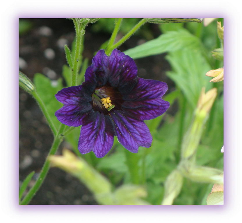 برگ های برووالیا سبز، براق، نوك تیز و تخم مرغی شكل می باشند. گلها بنفش متمایل به آبی و عرض آنها در حدود 5 سانتی متر است كه در اواخر بهار تا اواخر تابستان ظاهر می شوند گل یاقوت واریته ای دارد كه در زمستان به گل می رسند و گلهای آن به رنگ آبی پر رنگ می باشد.