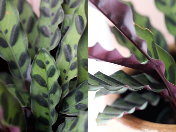 دارای برگهای خيلي زيباست و به رنگهاي سبز ، صورتي ، قرمز ، قهوه اي و ارغواني كم رنگ تا پر رنگ است