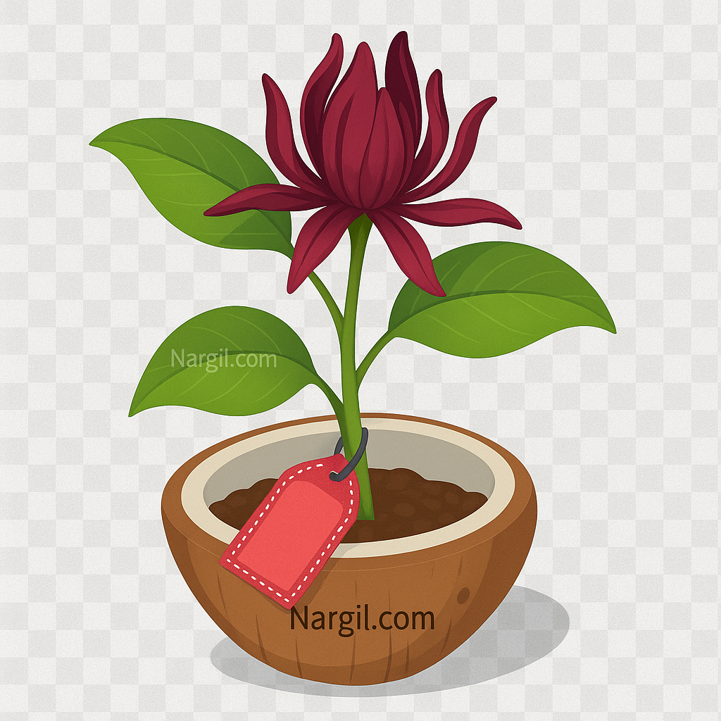 نام علمی گل شرابی به علت پتالوئید بودن کاسبرگها و شباهت انها به گلبرگ از دو واژه یونانی kaylx به معنای کاسه و Anthos به معنای گل مشتق شده است. گل های آن سرخ جگری و پرپر می باشد. عطر آن شبیه بوی شراب است و چوب آن نیز دارای عطر مطبوعی است.