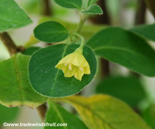 گل ها به رنگ زرد روشن و زنگوله ای شکل بوده که مشخصه ی آنها همانند سایر فلفل ها در نحوه ی قرار گرفتن پرچم ها و مادگی است.