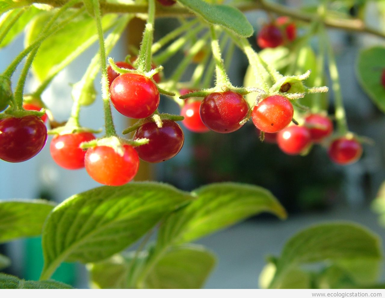 میوه ها در اندازه های بسیار کوچک به قطر 5 تا 6 میلیمتر و سته ای بوده که در صورت رسیدن کامل به رنگ قرمز دیده می شوند. به این میوه ها، پنج کالیکس دندانه دار نیز متصل است. هر میوه دارای تعدادی بذر می باشد. میوه های کوچکتر بیش از دو بذر ندارند اما میوه های بزرگتر هر کدام دارای پنج تا شش عدد بذر می باشند.