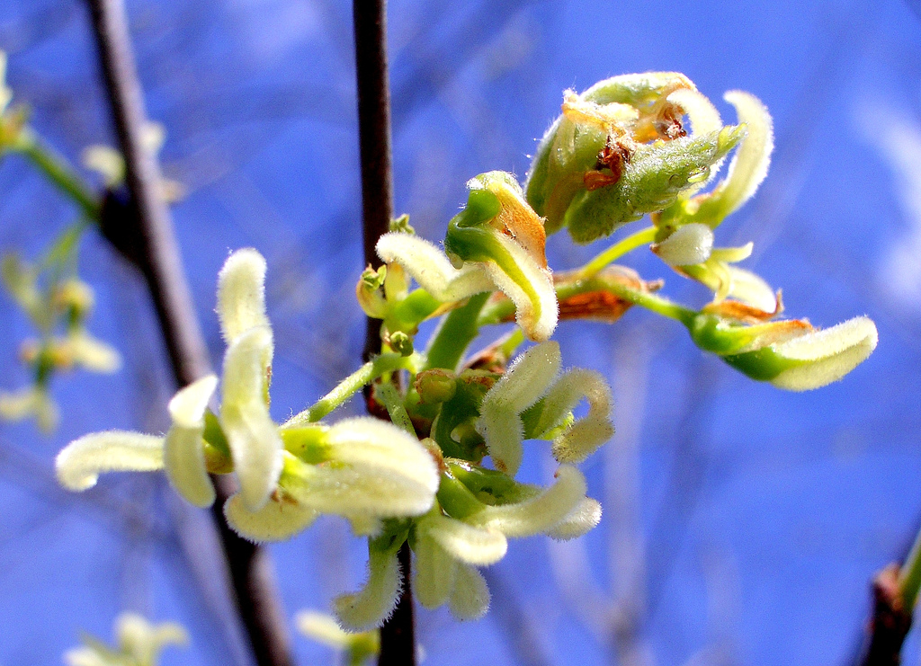 گل ها همزمان هم نر هستند هم ماده و در فصل بهار شکوفا میشوند و جنبه زینتی ندارند.