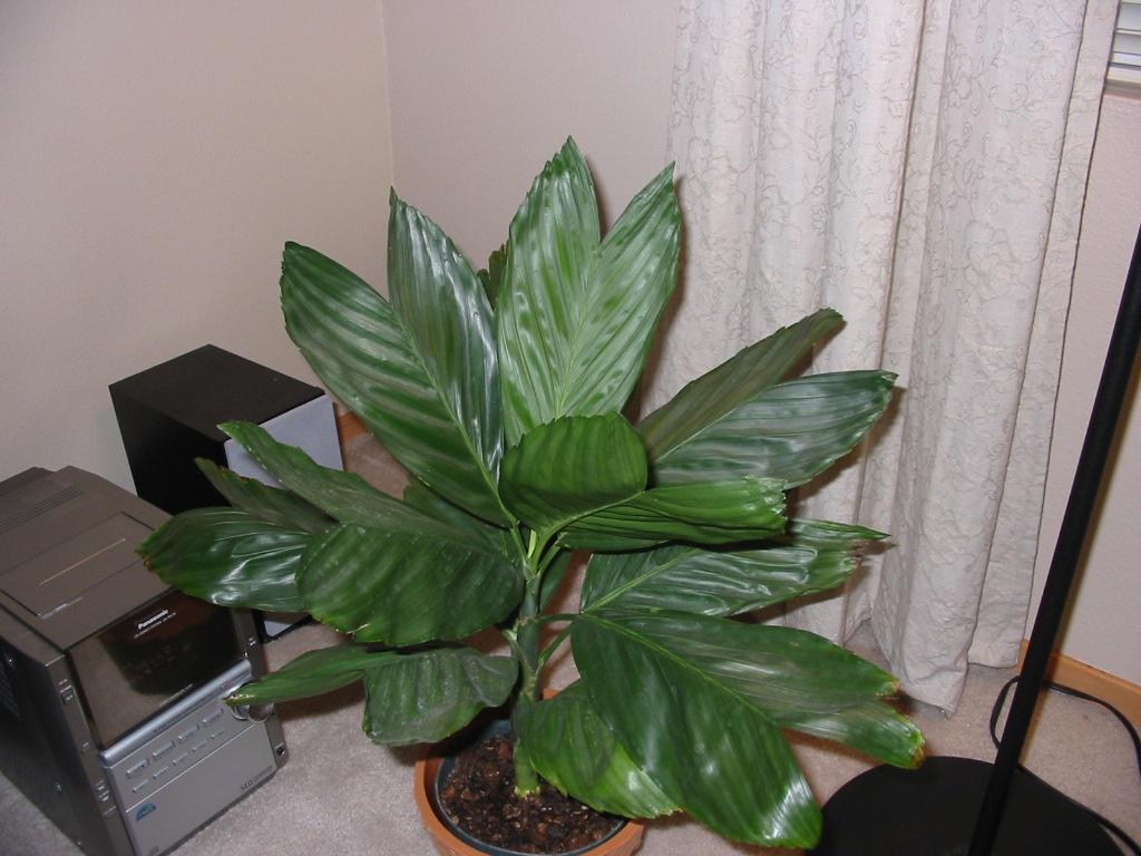 دارای برگ های راست تقریبا به طول 76 سانتی متر و عرض 25 تا 40 سانتی متر می باشد