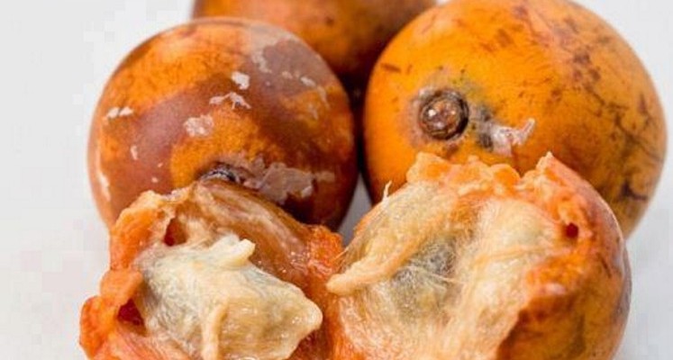 میوه ها کروی شکل به قطر 3 تا 4 سانتیمتر با یک شیار در انتها می باشند. این میوه ها از رنگ مایل به سبز (در میوه های نارس و نابالغ) تا رنگ صورتی یا زرد (در میوه های بالغ) متغیر خواهند بود. در هر میوه حدود 3 تا 5 عدد بذر وجود دارد. بذور به رنگ قهوه ای و براق به طول حدود 2 سانتیمتر و عرض 1 تا 1.5 سانتیمتر می باشند. این بذرها در حجره هایی ستاره ای شکل و در پالپی زرد رنگ وجود دارند. همچنین این بذور دارای پوششی سخت نیز می باشند.