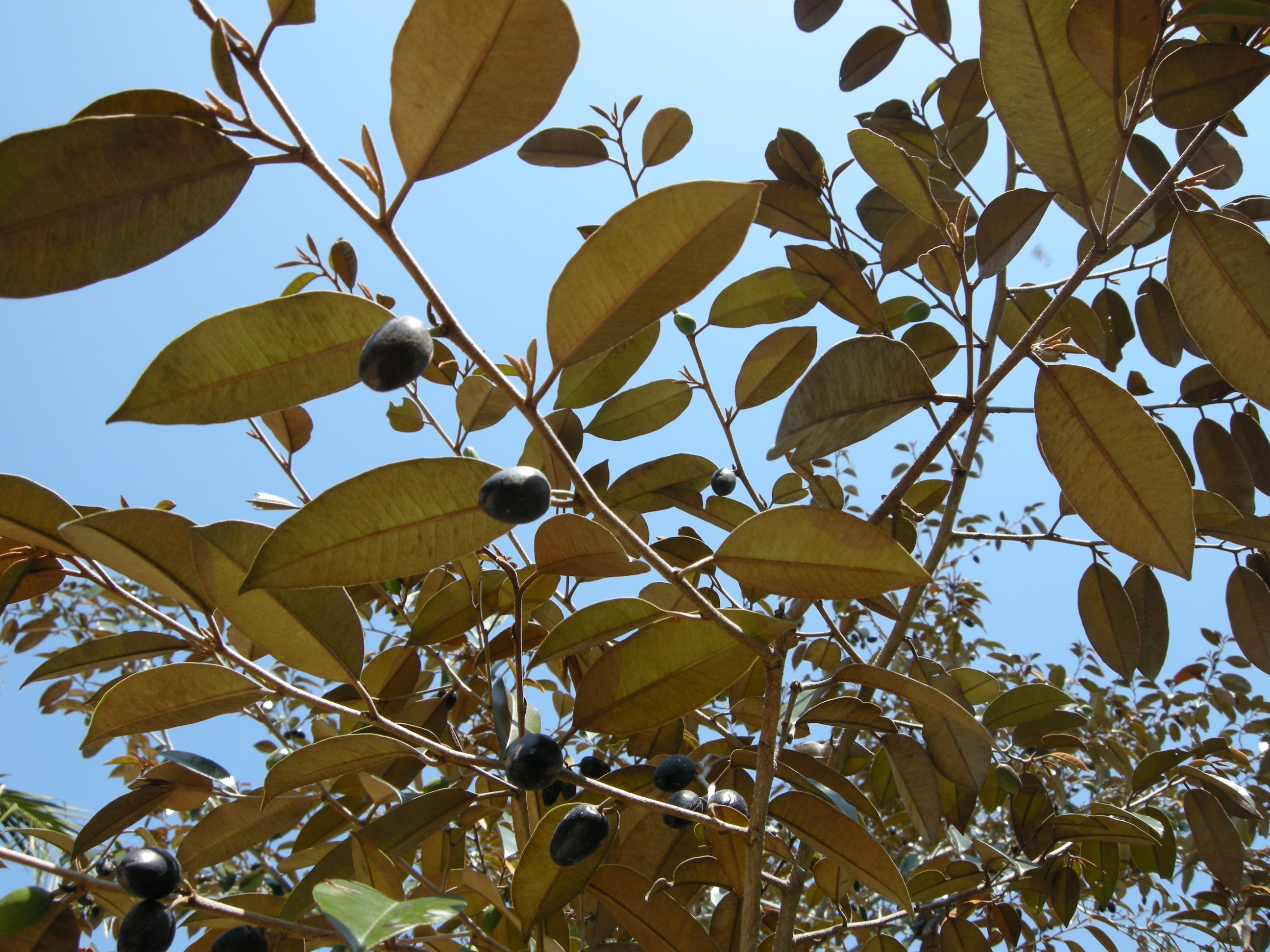 برگ ها همیشه سبز و دارای آرایش متناوب بوده و در قسمت های نوک به رنگ سبز براق و تیره و در انتها به رنگ قهوه ای روشن می باشند. آنها جزو برگ های ساده با رگبرگ های پرمانند دسته بندی می شوند. این برگ ها تخم مرغی شکل و به طول 3 تا 11 سانتیمتر و پهنای 2 تا 5 سانتیمتر هستند.
