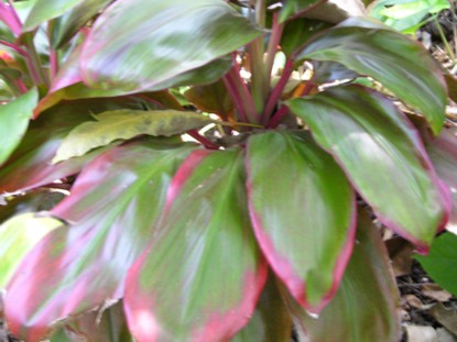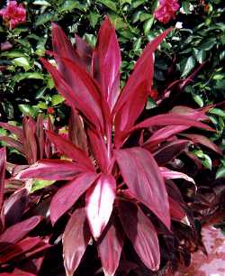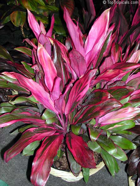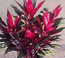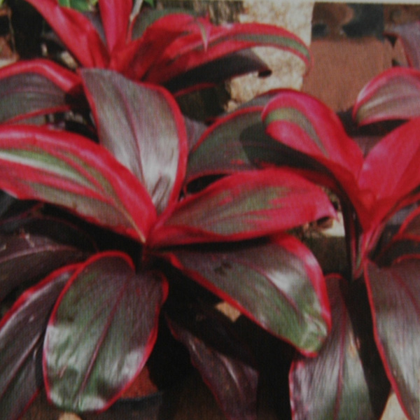 اینگونه فقط در گلدان کشت می شود. برگهای این گیاه نیزهای و به رنگ سبز تیره و براق با حاشیه قرمز متمایل به ارغوانی است.