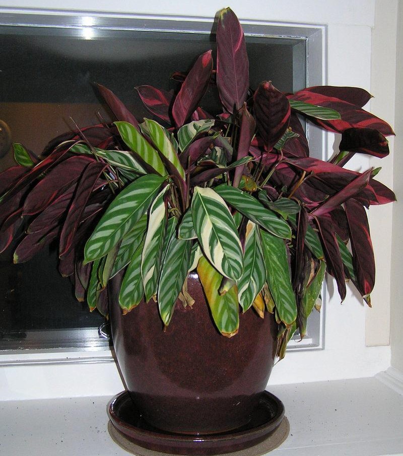 گاهي مبتديان اين گياه را با مارانتا وكلاته آ اشتباه ميگيرند. برگها نسبت به مارانتا ايستاده تر است . سطح برگها كرمي رنگ با رگبرگهاي سبز رنگ و سطح زيرين برگها ارغواني مي باشد.