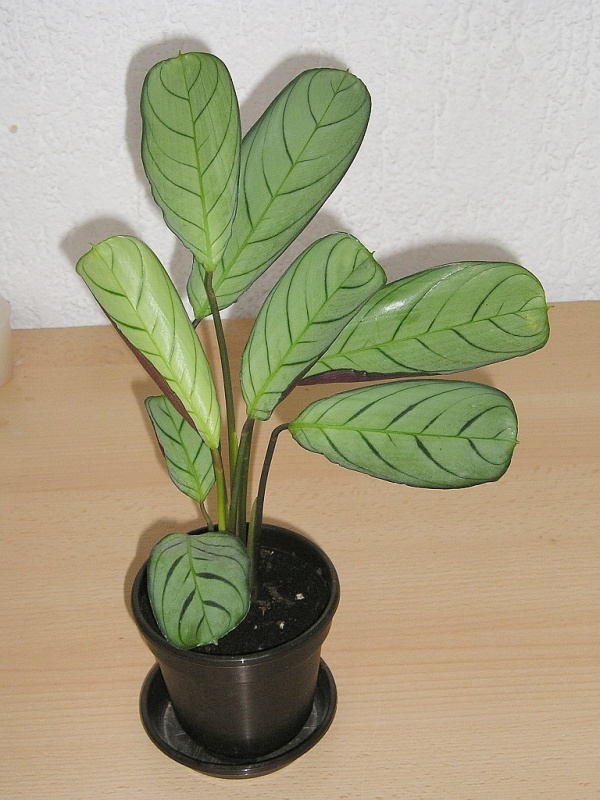 این گیاه آپارتمانی با برگ های كشیده و نوك تیز به طول 20 تا 25 سانتیمتر ، دارای دمبرگ های بلند می باشد و حداكثر بلندی و گستردگی آن به 75 سانتیمتر میرسد