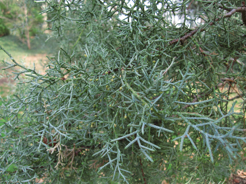 برگ های سرو نقره ای 2 تا 5 میلی متر طول دارند . مخروط آن دانه گرد و مستطیلی، 15 تا 33 میلی متر، طول دارد و دارای 6 یا 8 (به ندرت 4 یا 10) فلس میباشد که در ابتدا سبز خاکستری یا خاکستری قهوه ای است و 20 تا 24 ماه بعد از گرده افشانی به بلوغ میرسد. مخروط گیاه برای سالهای زیادی بسته باقی می ماند. مخروط نر 3 تا 5 میلیمتر طول دارد و انتشار گرده آن در فوریه و مارس است.