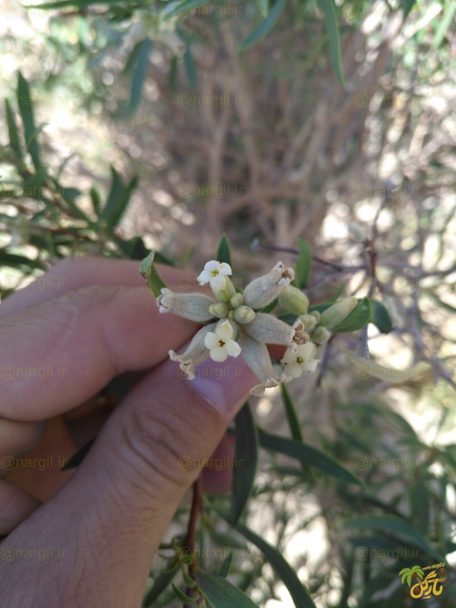 این گیاه بومی ایران بوده و در بسیاری از نقاط کشور یافت می شود. این گیاه جز جنس دافنه می باشد و در بعضی از مناطق ایران به عنوان داروی محلی برای درمان بیماری سرطان استفاده می شود. بررسی ترکیبات خالص شده از عصاره این گیاه به روش درون شیشه ای (invitro) اثرات ضد سرطانی قوی تری نسبت به ترکیبات جدا شده از سایر گونه های دافنه از خود نشان می دهند. هر چند که نتایج حاصل از اثرات ضد سرطانی عصاره این گیاه به روش مزرعه ای (invivo) ثابت کرد که عصاره این گیاه دارای ترکیباتی است که خواص ضد سرطانی قوی ای دارند.
