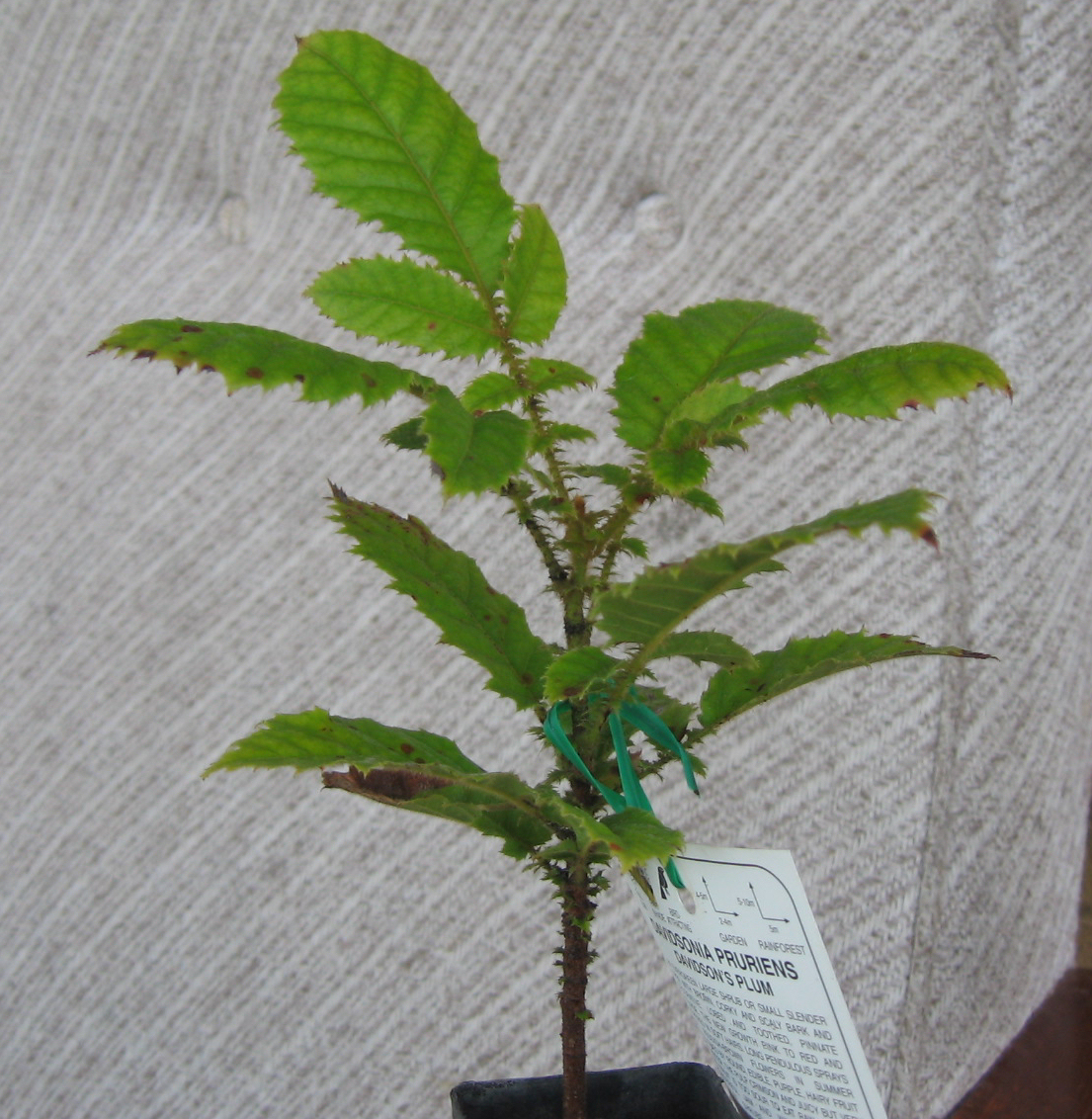 Davidsonia pruriensDavidson's plum که به فارسی آلوی داویدسون نامیده میشود، گیاهی از خانواده کونونیاسه بومی جنگل های بارانی استرالیا می باشد. نیاز های این گیاه عبارتند از نور: زیاد رطوبت: کمی مرطوب درجه حرارت: آب و هوای نیمه گرمسیری درجه سانتیگراد خاک: کوددهی منظم با کودهای کامل