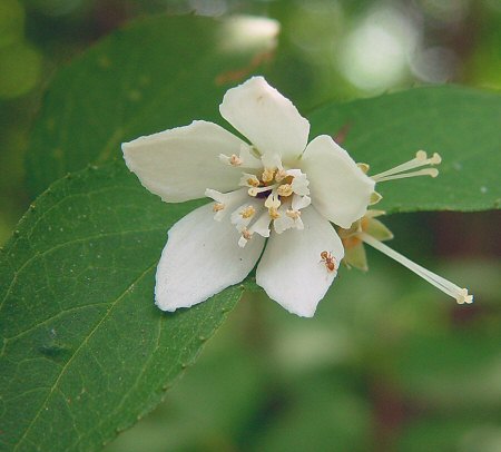 دوتزیا اسکابرا درختچه ای است خزاندار که تا حدود سه متر ارتفاع می تواند رشد کند.