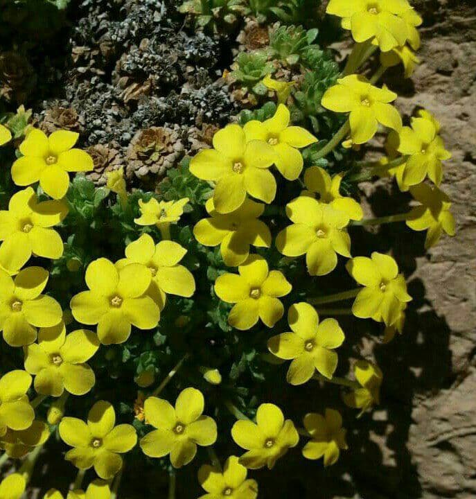 جنس Dionysia در قرن نوزدهم بهوسیله گیاهشناسان اروپایی در سفرهای گیاهشناسی به ایران و آسیای میانه معرفی شد. Dionysia diapensifolia بهعنوان یکی از گونههای خاص صخرههای ایران در اوایل قرن بیستم توصیف علمی شد و بهتدریج در منابع فلور ایران و خاورمیانه ثبت گردید.