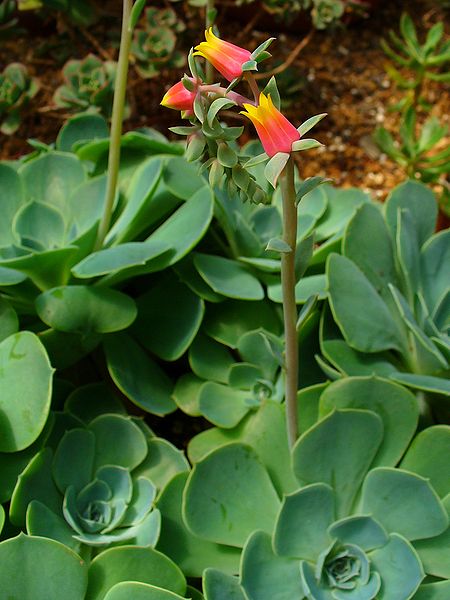 Echeveria Gibbiflora دارای گل های کوچکی به قطر 2 سانتی متر و به رنگ قرمز و سایه ای از رنگ زرد / نارنجی در قسمت داخلی آن است.