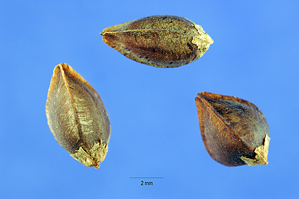 دانه سه وجهی و به رنگ قهوه ای تیره مایل به سیاه می باشد.