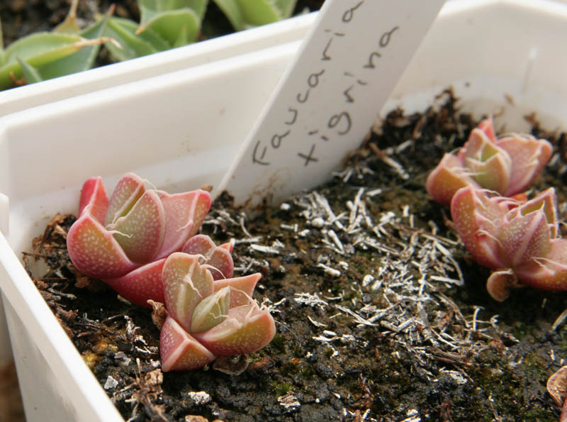 Faucaria tigrina Tiger jaws که به فارسی فائوکاریا نامیده میشود، گیاهی از خانواده آیزواسه بومی آفریقای جنوبی ، آلبانی می باشد. نیاز های این گیاه عبارتند از نور: متوسط رطوبت: خشک درجه حرارت: دمای بین 18 تا 25 درجه درجه سانتیگراد خاک: خاک شنی، ماسه ای ، کمپوست کاکتوس و خوب زهکشی شده