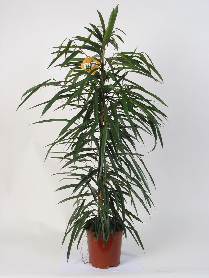 این نوع از ficus دارای برگ های بلند و باریک میباشد . بسیار مناسب برای منزل و یا گلخانه می باشد. دارای شاخ و برگ نسبتاً زیاد بوده ولی گل ندارد.