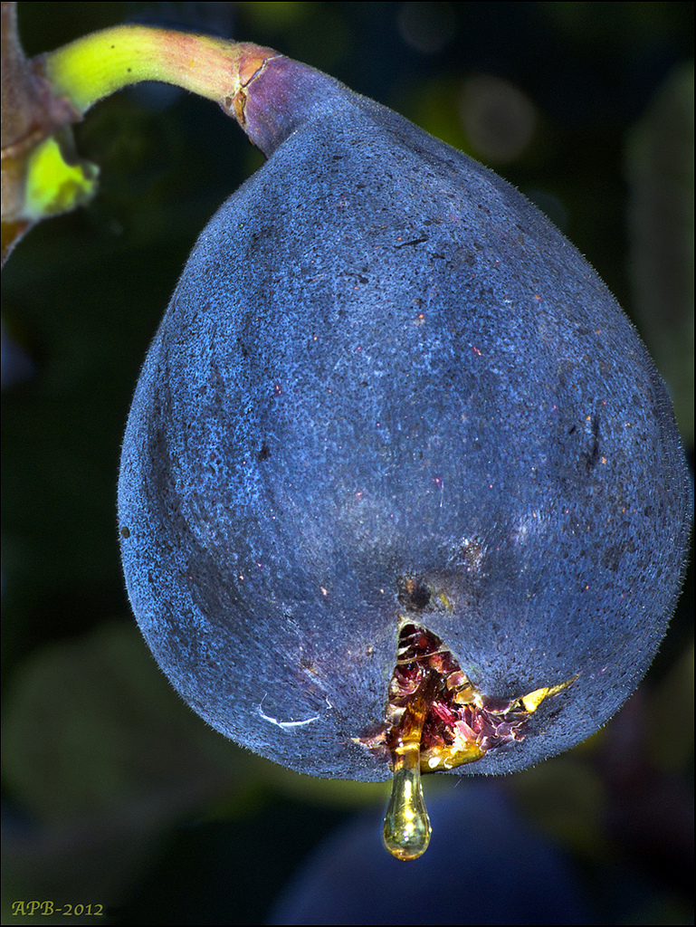 گل های کوچک انجیر خارج از دید است و به صورت خوشه هایی درون میوه سبز وجود دارند. میوه بالغ دارای پوست سختی است به رنگ سبز تیره تا قهوه ای یا بنفش تیره دیده می شود که اغلب پس از آماده شدن ترک خوردگی دارند و مغز گوشتی آن دیده می شود. داخل ان پوست سفیدی وجود دارد که توده ای بذر را درون میوه گوشتی احاطه کرده است. دانه ها به میزان کم یا زیاد درون میوه وجود دارند