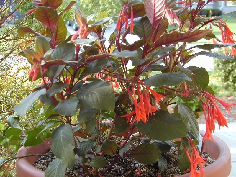 Fuchsia triphylla Honeysuckle Fuchsia که به فارسی فوشیا تریفیلا نامیده میشود، گیاهی از خانواده onagraceae، بومی جزایر کاریب می باشد. نیاز های این گیاه عبارتند از نور: زیاد رطوبت: کمی مرطوب دمای محیط: نواحی گرمسیری و نیمه گرمسیری خاک: خاک هایی با رطوبت کافی و پی اچ 6 تا 7