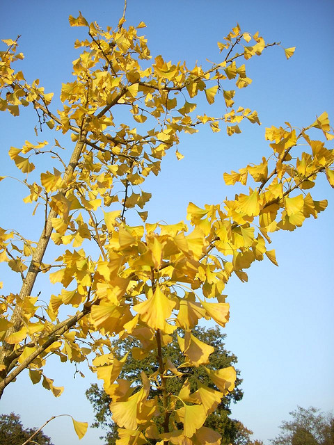 در طول پاییز برگها زرد روشن می شوند وسپس می افتند.