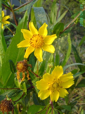 گلها بهصورت کپه (سرگل) شبیه آفتابگردان در انتهای شاخهها تشکیل میشوند. هر کپه دارای گلچههای زبانهای حاشیهای و گلچههای لولهای مرکزی است. رنگ گلچههای زبانهای معمولاً زرد روشن تا زرد طلایی بوده و قطر کپهها اغلب حدود ۳ تا ۶ سانتیمتر است.