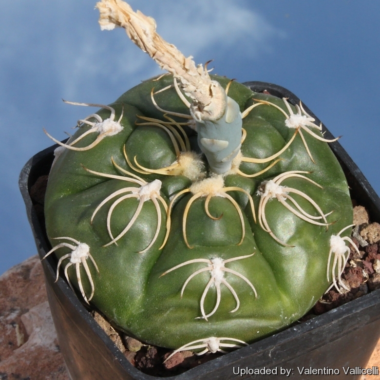 کاکتوس عنکبوتی کروی شکل میباشد و رنگ تنه آن سبزتیره و براق است ، تا ارتفاع 15 سانتیمتر رشد میکند و قطری در حدود 10 سانتیمتر دارد.