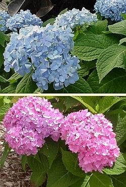 در خاک های قلیایی با آلومینیوم قابل جذب بالا، رنگ گل ها آبی شده ولی در خاک های اسیدی و یا خاک هایی فاقد آلومینیوم قابل جذب، رنگ گل ها به رنگ صورتی دیده می شود.