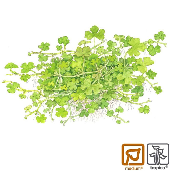 Hydrocotyle rotundifoliawater pennywort که به فارسی قدح مریم آبی نامیده میشود، گیاهی از خانواده آرالیاسه بومی هند، ایسلند، ماداگاسکار می باشد. نیاز های این گیاه عبارتند از نور: متوسط رطوبت: خیلی مرطوب دمای محیط: نواحی معتدل و گرم خاک: خاک های بسیار مرطوب