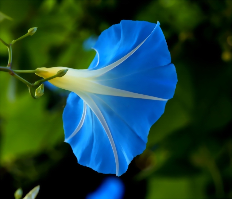 این گیاه در طول رشد میتواند به 2 تا 4 متر بلندی برسد. دارای برگ های مرتب مارپیج 3 تا 7 سانتی متری با دمبرگ بلند 1.5 تا 6 سانتی متری است. گل ها به شکل ترومپت حدود 4 تا 9 سانتی متر قطر دارند و اغلب به رنگ آبی با مرکز سفید و زرد طلایی میباشند.