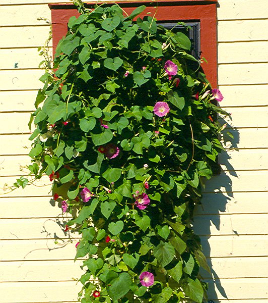 این گیاه بالا رونده و سریع الرشد دارای ساقه نرم تا نیمه خشی، برگها بیضی تا قلبی شكل به رنگ سبز و نوك باریك است. گلهای آن شیپوری شکل آن در تابستان تا اوایل پاییز ظاهر می شوند.