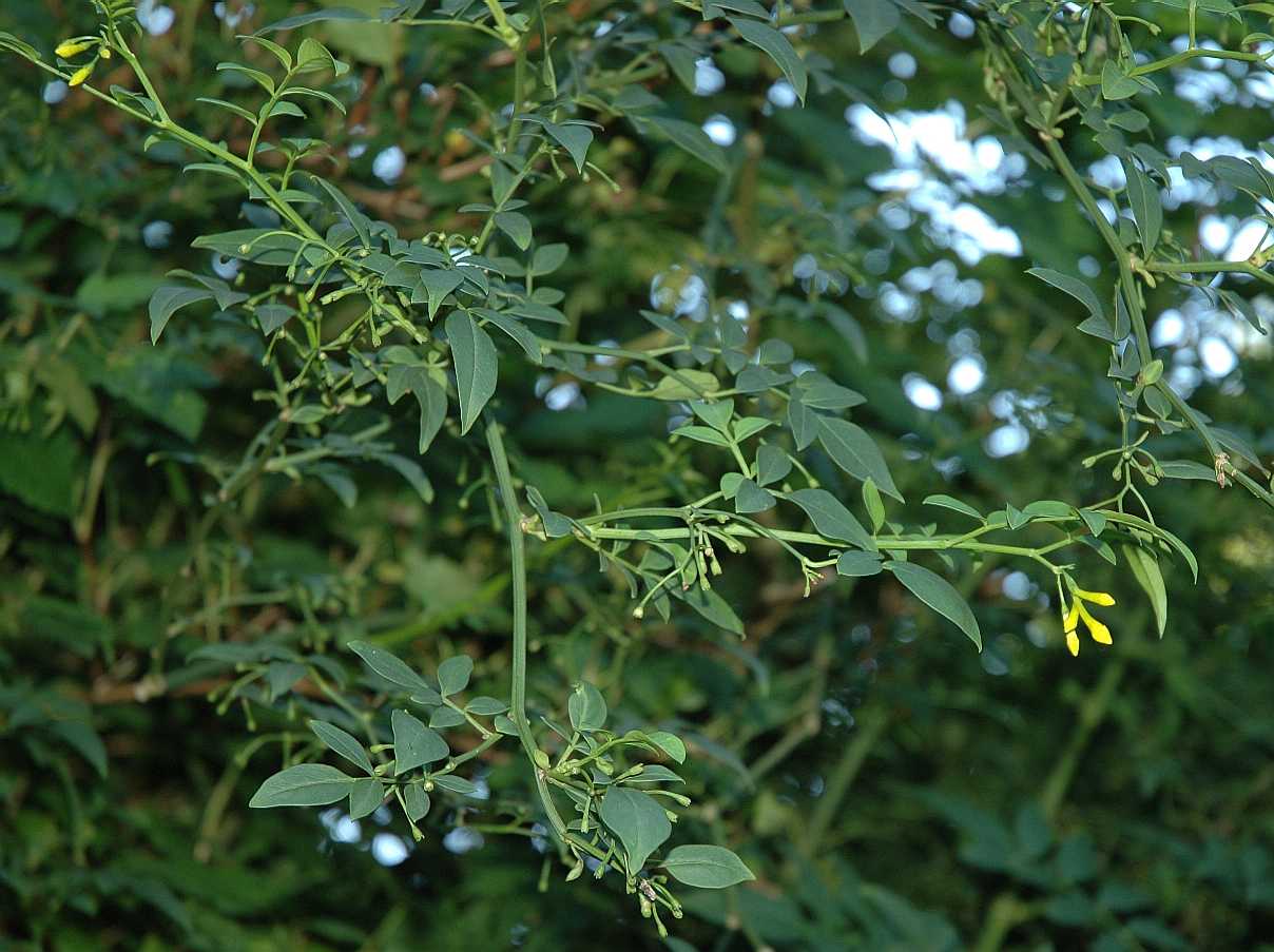 این گیاه به فرم درختچه ای مدور و نیمه همیشه سبز بوده با ساقه های ضخیم می باشد. این درختچه ها معمولاً تا ارتفاع 2.5 تا 4 متر و با گستردگی حدود 3 متر رشد می کنند. برگ ها به رنگ سبز تیره، محکم، به طول حدود 5 سانتیمتر با 5 تا 7 برگچه مرکب شانه ای هستند. در بسیاری از نواحی، برگ های این گیاه در تمام طول زمستان سبز بوده و روی شاخه ها قرار دارند. ولی در زمستان های بسیار سرد و طولانی، شاخ و برگ و جوانه ها ممکن است دچار یخ زدگی شوند. جوانه های گل معمولاً در بهار و تابستان به صورت خوشه هایی متشکل از حدود 6 گل زرد رنگ و معطر تشکیل می شوند. نام گونه ای این گیاه (humile) به معنی کند رشد می باشد. کولتیوارهای متعددی از این گونه شناسایی شده است که یکی از مهمترین این کولتیوارها، Revolutum می باشد. میوه های آن به صورت سته ای و به رنگ سیاه هستند.